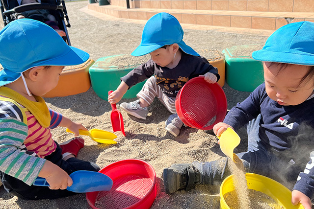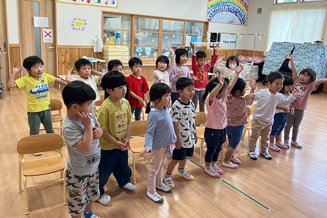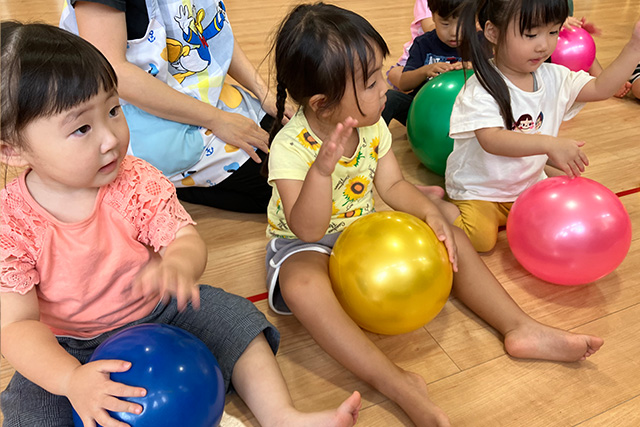 外部講師による体操・太鼓・英語・リトミック教室を取り入れています!0歳児は生活リズムが安定していないので、個々に対応しながらゆっくりと生活リズムをつけていきます。当園は、「絵本の読み聞かせ」「異年齢交流」「障がい児保育」「地域交流」「各種教室」の中で、遊びを通して人と関わる力を育みます。